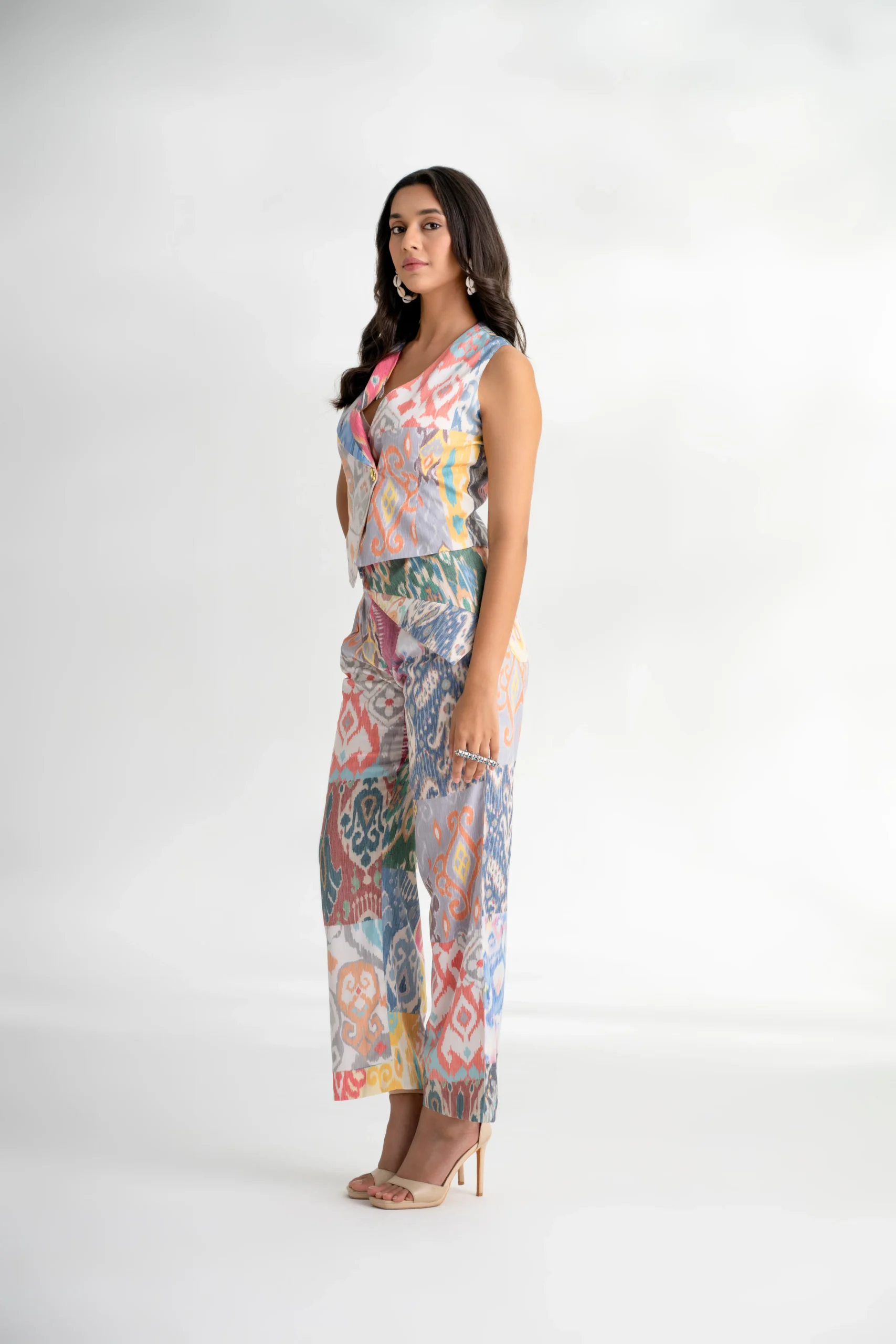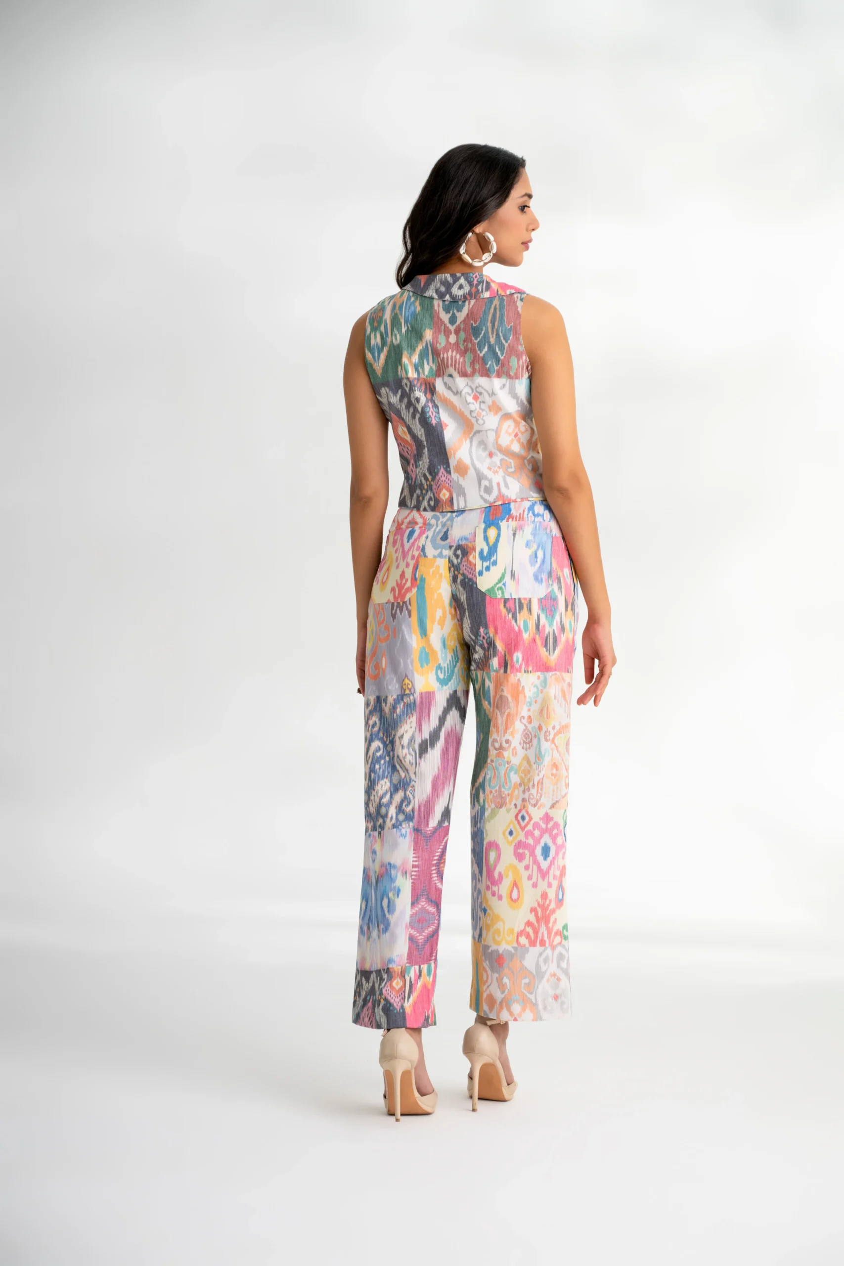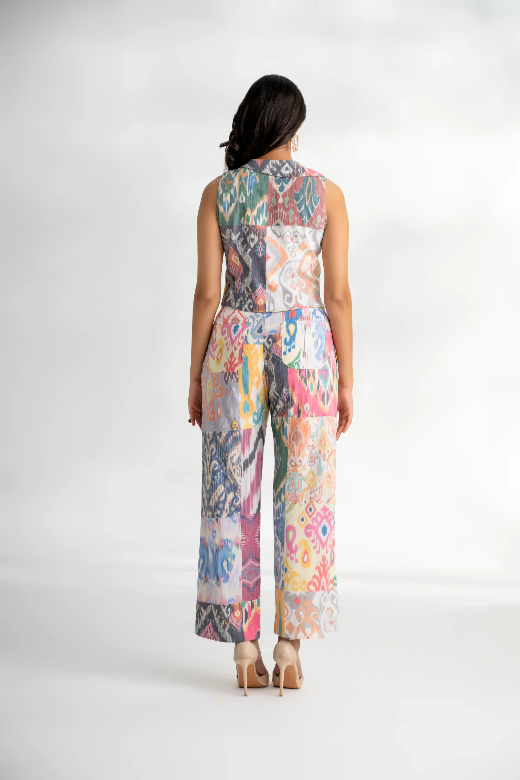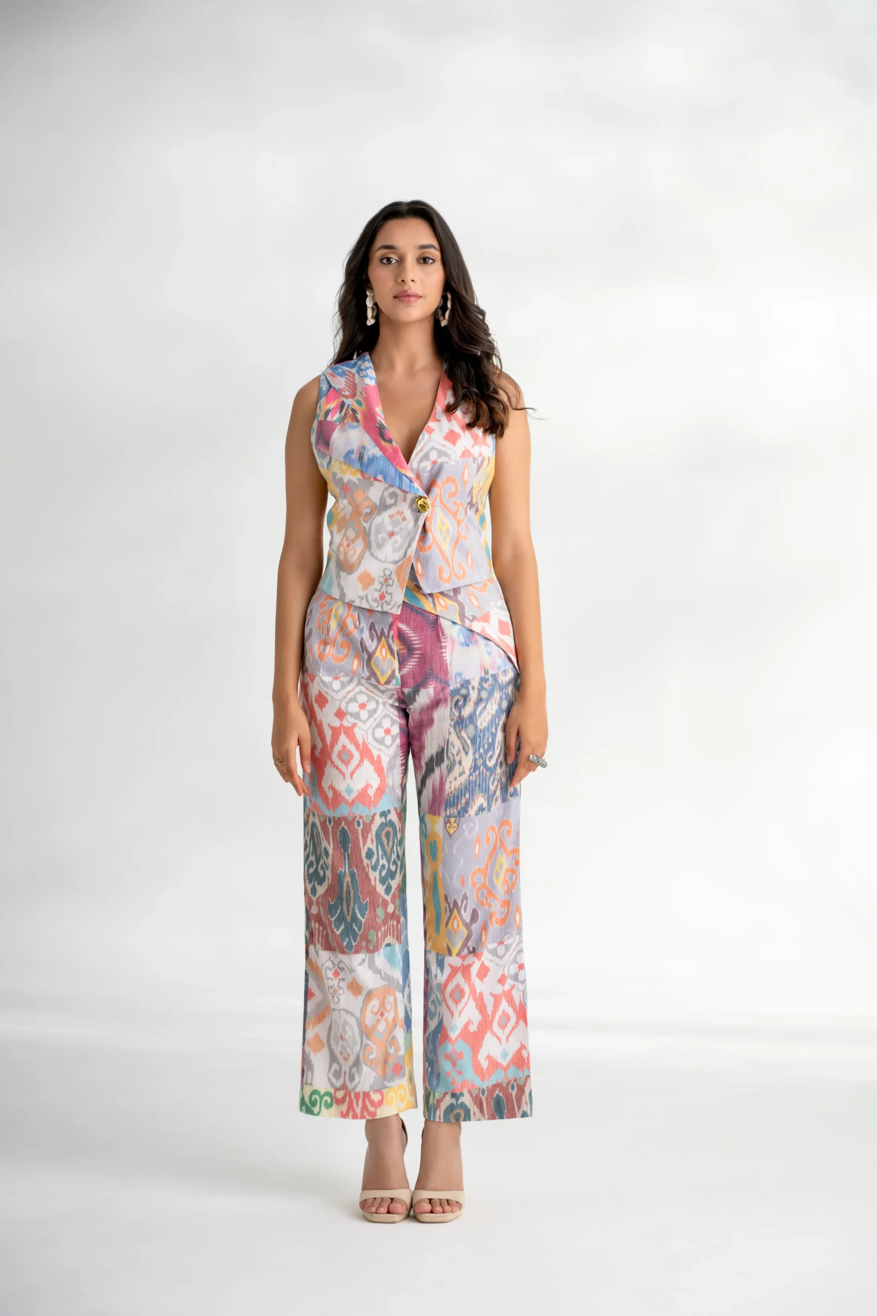 - Print: Multi-color Ikat on a white base